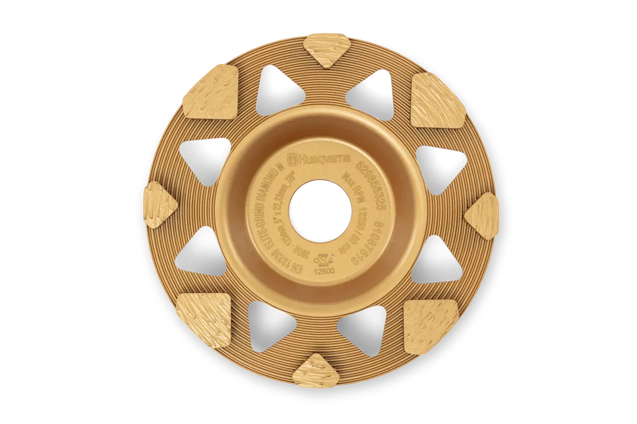 Husqvarna ELITE-GRIND STAR M - vrhunski alat za kutne brusilice dizajniran za brušenje betona. Jedinstveni šesterokutni segmenti s dijamantima omogućuju visoku stopu uklanjanja materijala na tvrdim betonskim površinama. Najbolje rezultate postiže pri suhom brušenju, što produžuje životni vijek alata i smanjuje vrijeme rada. Idealan za uklanjanje tvrdih premaza, estriha i abrazivnih betonskih površina. Dostupan u različitim granulacijama (25, 30, 50, 100) i promjerima (125mm, 180mm).