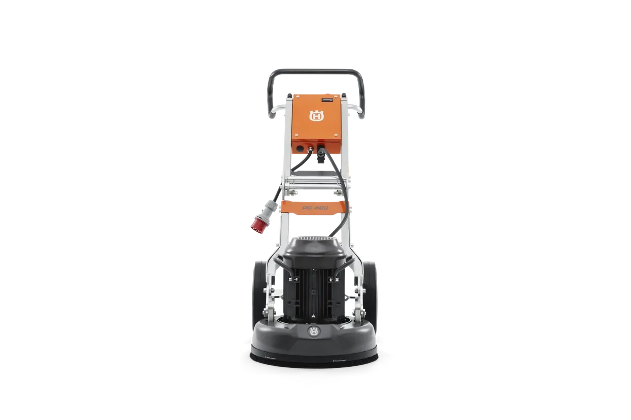Husqvarna PG 400 - profesionalni jednodiskni brusilica za beton s motorom od 4 kW, širinom brušenja 400 mm i maksimalnim pritiskom od 49 kg. Idealna za uklanjanje ljepila, boje i epoksida s betonskih površina. Ergonomski dizajn s EZchange™ sustavom za brzu zamjenu dijamantnog alata.