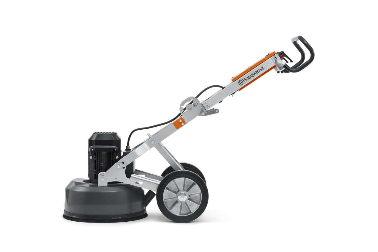 Husqvarna PG 450 - svestrani planetarni brusilac za beton s širinom brušenja 450 mm. Tri brušna diska od 180 mm, motor 2,2 kW, maksimalna brzina 705 o/min. Idealan za industrijsku i komercijalnu upotrebu s jednostavnim transportom i ergonomskim dizajnom.