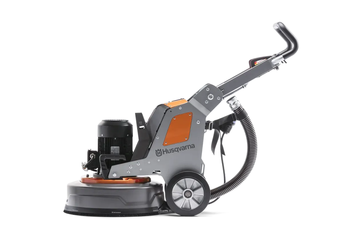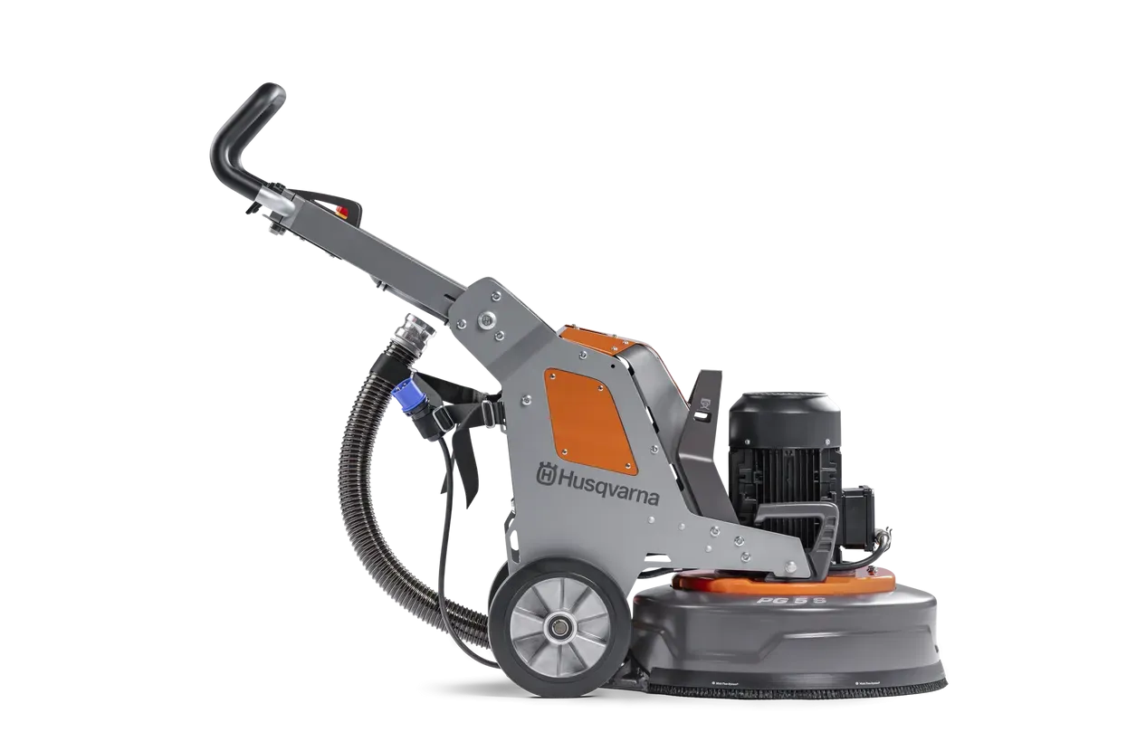 Husqvarna PG 5 S je profesionalna brusilica s tri brušeća diska promjera 230 mm za efikasno brušenje betona i drugih površina. Opremljena je zatvorenim sustavom brušenja s 1000 sati rada bez održavanja i zaštićenom elektronikom. Zahvaljujući EZchange™ tehnologiji omogućuje brzu zamjenu dijamantnih alata, a podesiv pritisak brušenja (do 80 kg) osigurava optimalne rezultate na različitim površinama.