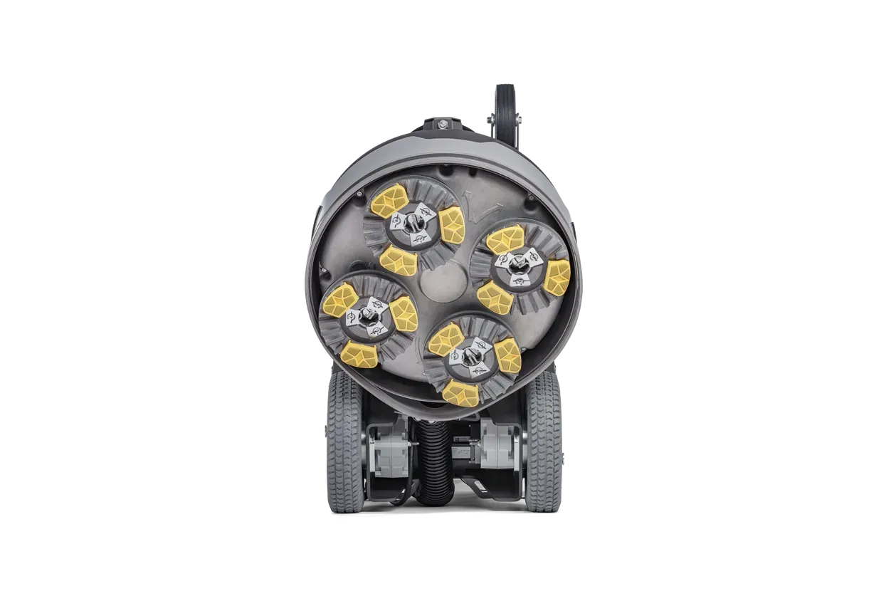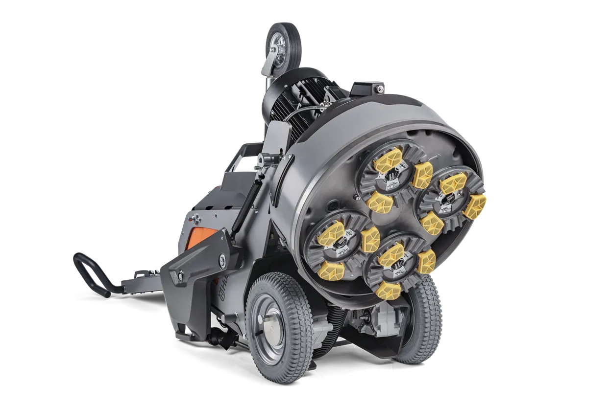 Husqvarna PG 6 XR koristi inovativnu tehnologiju s četiri brusna diska koji se vrte u suprotnim smjerovima, osiguravajući savršeno uravnoteženo i učinkovito brušenje. S jednim kontrolnim gumbom lako se prilagođava brzina vrtnje (od 441 do 1176 rpm), dok veći broj diskova i dijamanata omogućuje brzu obradu uz bolju ekonomičnost alata.