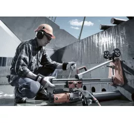 DMS 240 bušilica na stalku - profesionalni alat s optimalnom brzinom bušenja zahvaljujući jednostrukom i dvostrukom prijenosu. Lagana aluminijska osnovna ploča s integriranom vakuumskom osnovom omogućuje brzu instalaciju bez oštećenja površine. Oprema uključuje zaštitu od preopterećenja i transportne kotače za laku pokretljivost. Idealna za kutno i horizontalno bušenje do 250 mm.