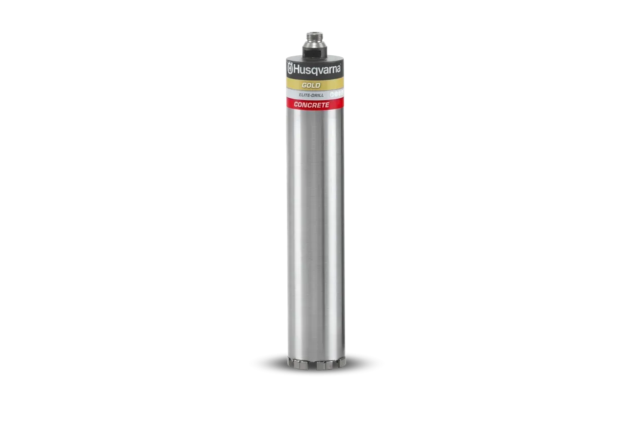 Husqvarna ELITE-DRILL™ D10 TW - profesionalna dijamantna kruna zlatnog standarda za bušenje armiranog betona. Dostupna u promjerima 10-101mm i duljinama jezgre 200/350mm. Laserski zavar, mokro hlađenje, 1/2" priključak. Do 25% brže bušenje zahvaljujući optimiziranoj kombinaciji dijamanata i veziva.