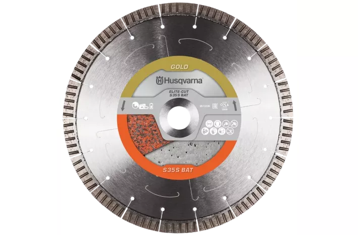 Husqvarna ELITE-CUT S35S BATTERY 230mm dijamantna rezna ploča posebno dizajnirana za baterijske pile. Idealna za rezanje prirodnog kamena s inovativnom konstrukcijom koja značajno smanjuje buku i vibracije. Promjer 230mm s provrtom 22,23mm, suho rezanje.
