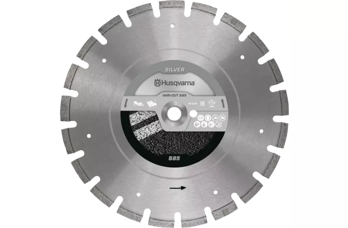 Husqvarna VARI-CUT™ S85 PLUS je visokokvalitetni dijamantni rezni disk posebno dizajniran za učinkovito i precizno rezanje asfalta i drugih abrazivnih materijala. Ovaj disk srebrne razine performansi dostupan je u dva promjera - 450mm i 500mm, oba s osovinom od 25,4mm.