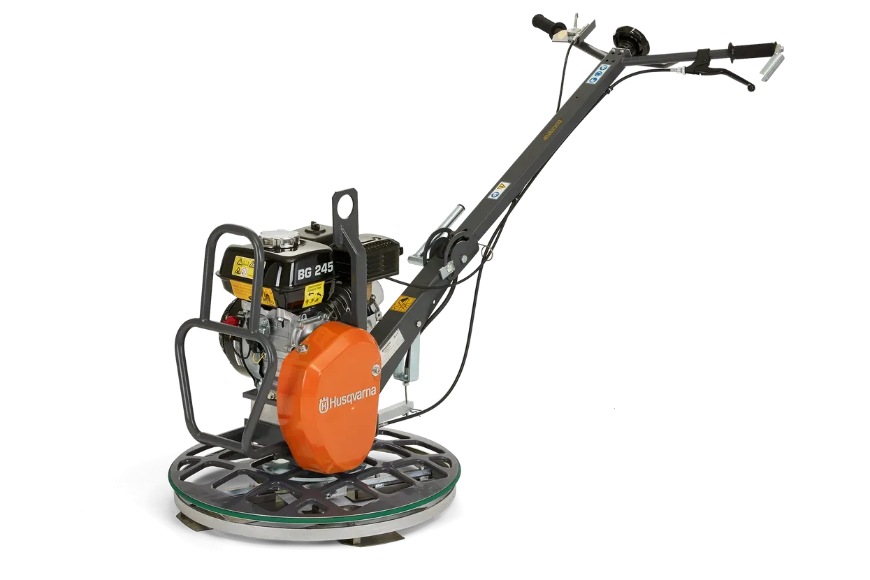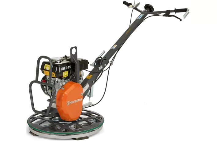 Husqvarna BG 245 je profesionalna gladilica za beton s benzinskim Honda GX120 motorom snage 2,6 kW. Opremljena je sklopivom ručkom za lako transportiranje i četiri kraka za učinkovito zaglađivanje betonskih površina. Sa promjerom propelera od 605 mm i težinom od 60 kg, osigurava ravnomjerno i precizno završno obrađivanje betona uz smanjene vibracije od 6,2 m/s².
