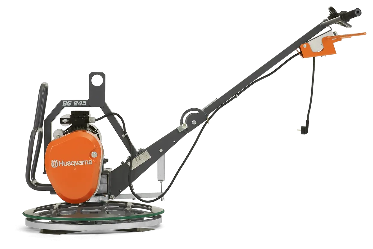 Husqvarna BG 245 E je profesionalna gladilica za beton sa snažnim električnim motorom od 1,5 kW. Ova gladilica s promjerom propelera od 605 mm i 4 kraka pruža preciznu završnu obradu betonskih površina uz minimalne vibracije (3,7 m/s²). Opremljena je kratkom sklopivom ručkom i zaštitnim prstenom od 615 mm za siguran rad. Težina od 60 kg osigurava stabilnost i učinkovitost pri radu na svježem betonu.