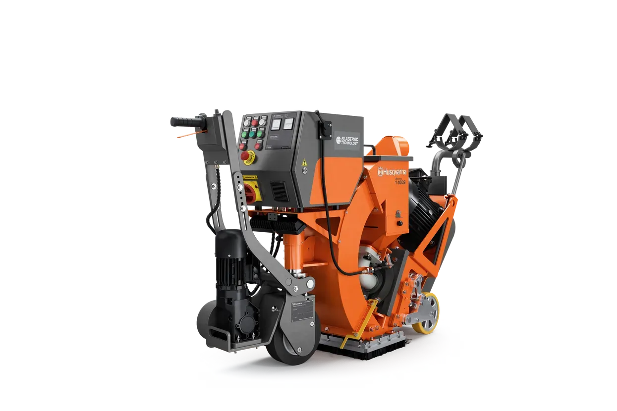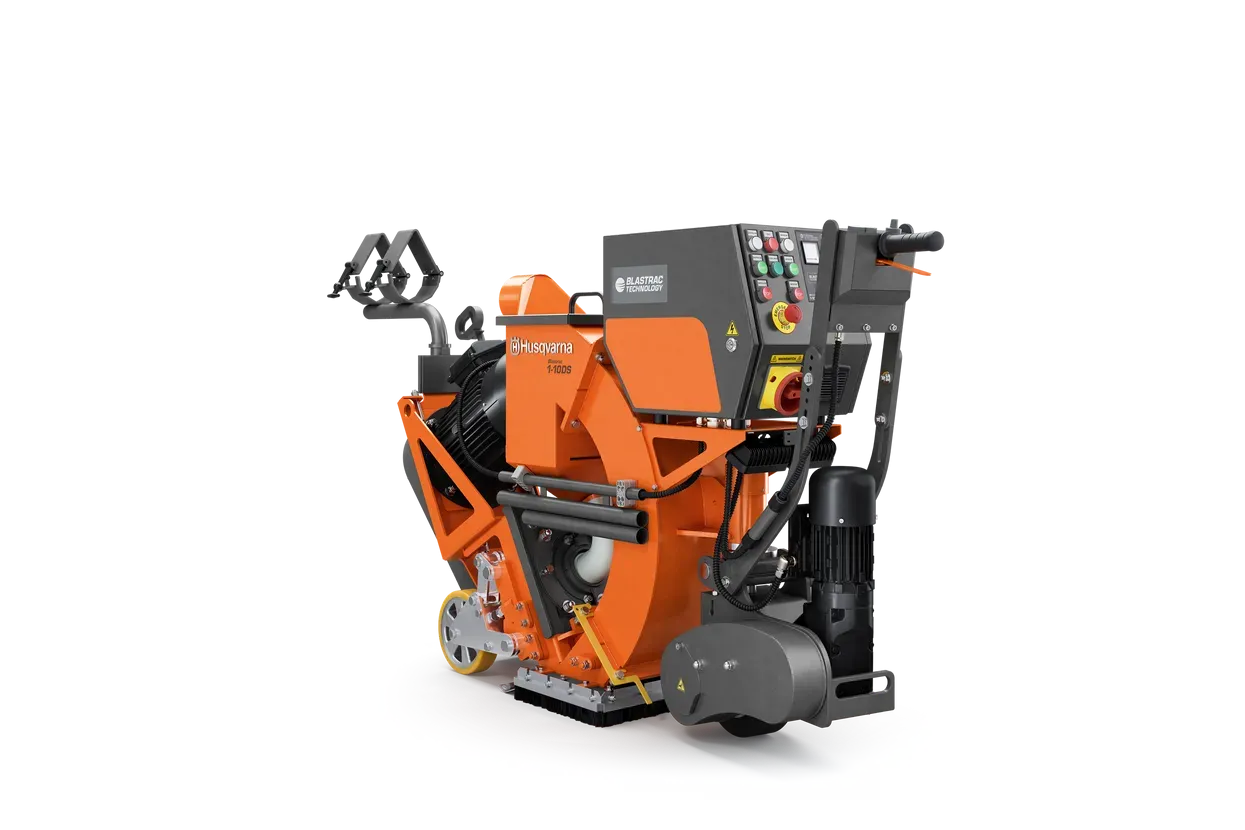Husqvarna Blastrac 1-10DS je profesionalni samohodni stroj za sačmarenje s radnom širinom 25,4 cm i snagom 11,6 kW. Dostupan u dvije varijante (standardna i s touch screen kontrolama), omogućava praktički bezprašno rukovanje zahvaljujući zatvorenom krugu s industrijskim sakupljačem prašine. Idealan za pripremu betonskih površina.