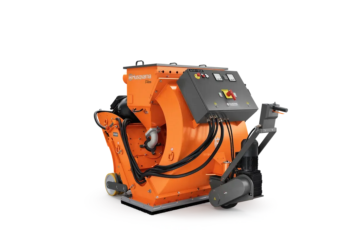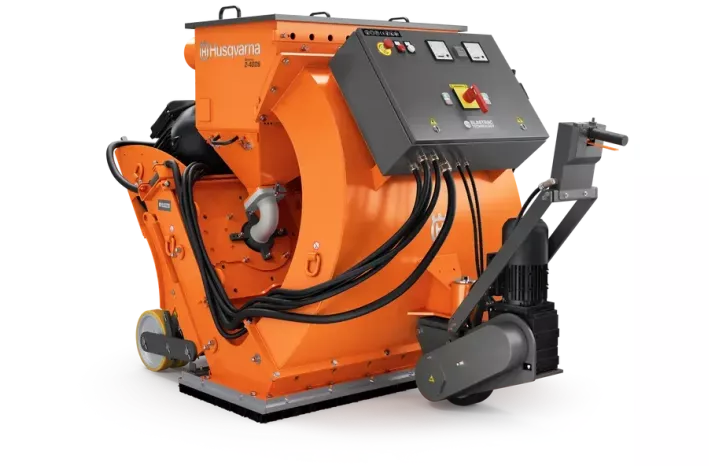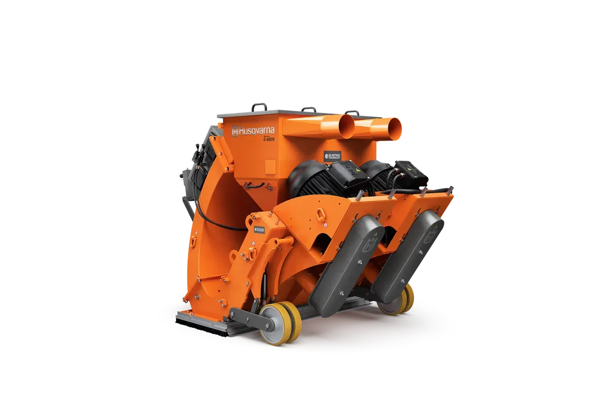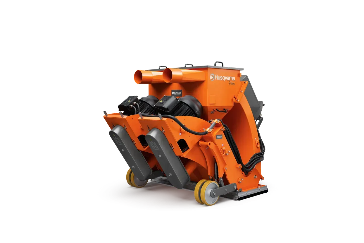 Husqvarna Blastrac 2-48DS - profesionalni stroj za pjeskarenje bez prašine s produktivnošću do 2.000 m²/h. Samohodni sustav s radnom širinom 122 cm i snagom 52,2-52,64 kW. Dostupan u varijantama 50 Hz (400 V) i 60 Hz (460 V). Ekološki pristup s minimalnom potrošnjom čeličnih kuglica (150 g/m²) i zatvorenim krugom recikliranja abraziva.