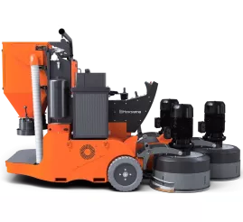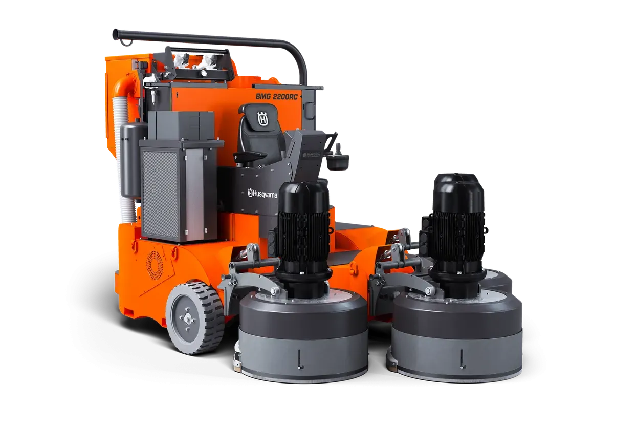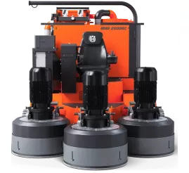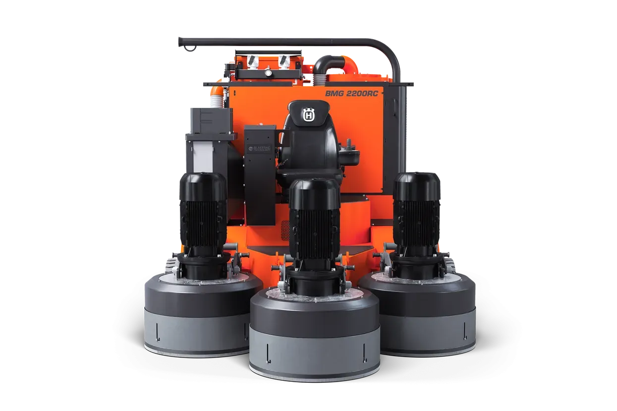Husqvarna Blastrac BMG 2200RC - profesionalni stroj za brušenje velikih betonskih površina s trojnom glavom i 9 diskova. Širina brušenja 2.150 mm, snaga motora 62 kW, prilagodljiva brzina 400-1.200 o/min. Maksimalni pritisak brušenja 390 kg. Žično napajanje 400-480V. Idealan za zahtjevne projekte na velikim površinama s mogućnošću voznog ili daljinskog upravljanja.