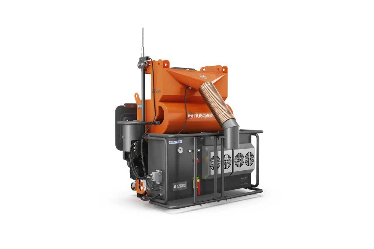 Husqvarna Blastrac EBE 900V je profesionalni daljinski stroj za pjeskarenje čelika s radnom širinom od 89 cm i produktivnošću do 120 m²/h. Napajan je trofaznim motorom od 50 kW (400V, 60Hz) s opcijama s vitlom ili bez vitla. Dimenzije: 1463x1145x1480 mm, težina 880 kg. Potrošnja čeličnih kuglica 1000 g/m², priključak za usisnu cijev 150 mm.