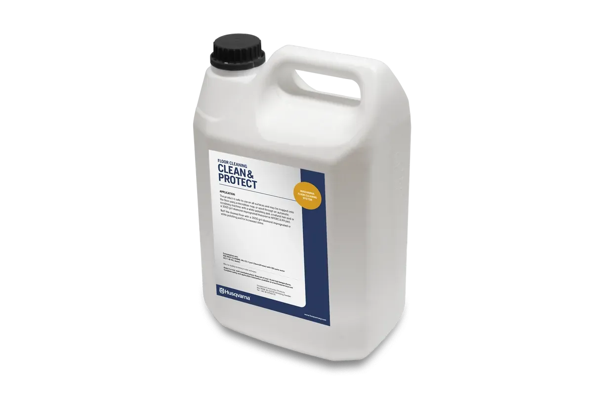 Husqvarna CLEAN & PROTECT je prirodna otopina za čišćenje i zaštitu betonskih podova i površina od prirodnog kamna. Dostupna u varijanti od 5 litara, ova tekućina pruža sveobuhvatno rješenje za održavanje i dugotrajnu zaštitu vaših površina s rokom trajanja od 2 godine.