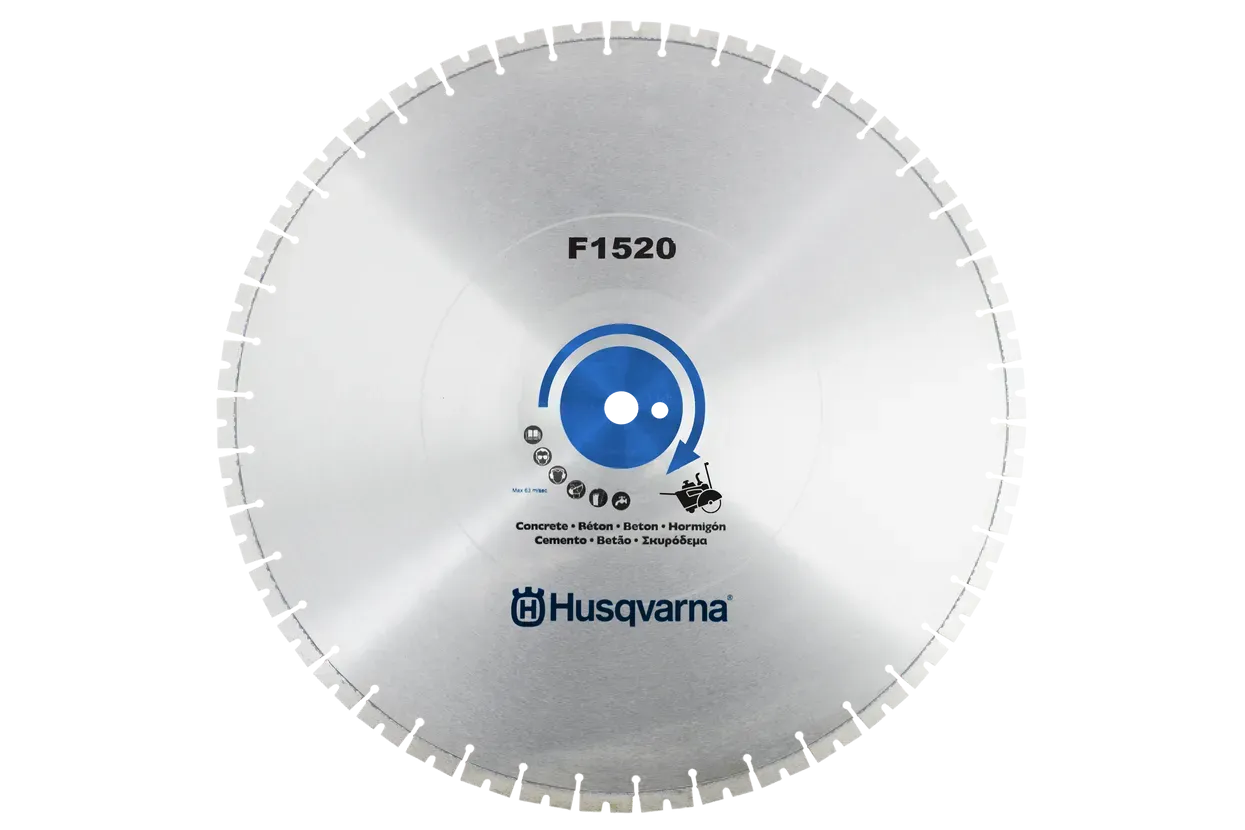 Husqvarna ELITE-CUT™ F1520 profesionalna dijamantna rezila zlatnog standarda za najzahtjevnije aplikacije. Dostupna u promjerima 500-1500mm, optimizirana za mokro rezanje betona srednje tvrdoće s izvrsnom brzinom i dugotrajnošću.