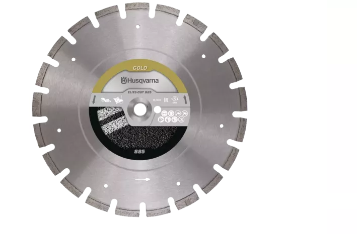 Husqvarna ELITE-CUT™ S85 profesionalni dijamantni disk za asfalt dostupan u promjerima 450mm, 500mm i 600mm. Segmentirana konstrukcija omogućava mokro/suho rezanje tvrdog asfalta s naprednim vizualnim indikatorima za praćenje potrošnje. Zlatna razina performansi za strojeve 4-15.5kW.