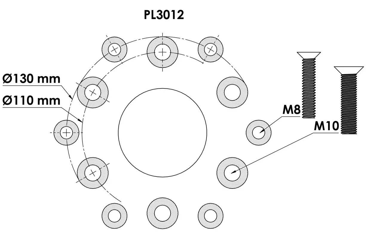 • Provrt ploče kod prirubnice: 60 mm, PL3012, PL70140