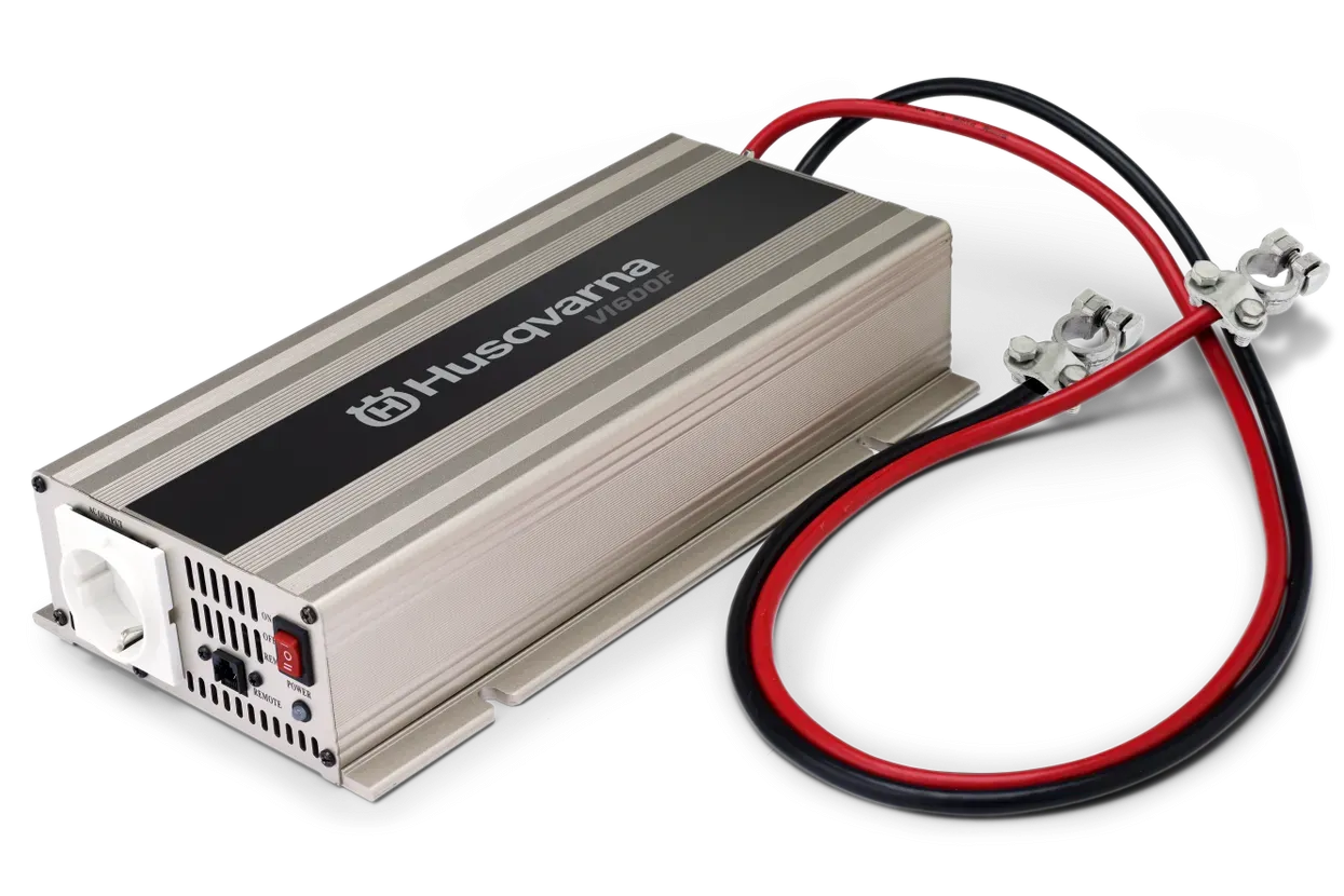 HUSQVARNA Inverter VI600F - pouzdani pretvarač napona za baterijsko napajanje. Pretvara 12V DC u 240V AC napetost, kompatibilan s Husqvarna baterijskim proizvodima. Kompaktna konstrukcija težine 3 kg, EU verzija s odgovarajućim priključcima. Energetski učinkovit i pouzdan za profesionalnu upotrebu na terenu.