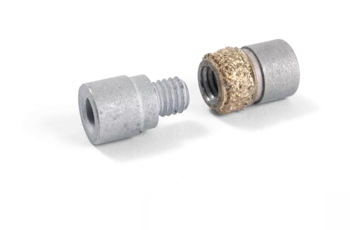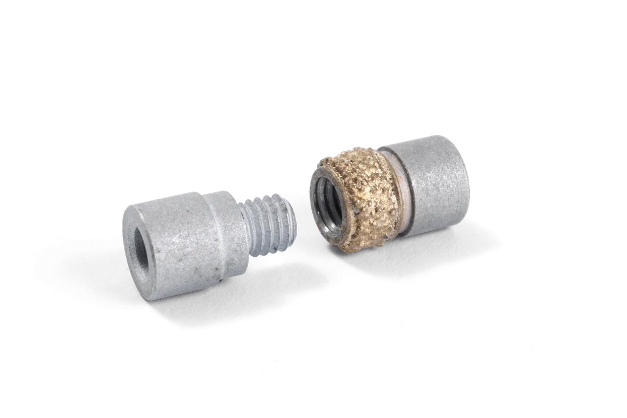 CONN. SCREW D10.3 COBRA 2pc M+F - kompaktni Husqvarna konektor za vakuumsko spajanje žica. Težak samo 12g, prilagođen kablovima promjera 5mm. Kompaktnih dimenzija 15×20×8mm, idealan za povezivanje s krunjskim bušilicama i podnim rezačima. Omogućava brzu i pouzdanu vezu između uređaja bez CO₂ emisija.