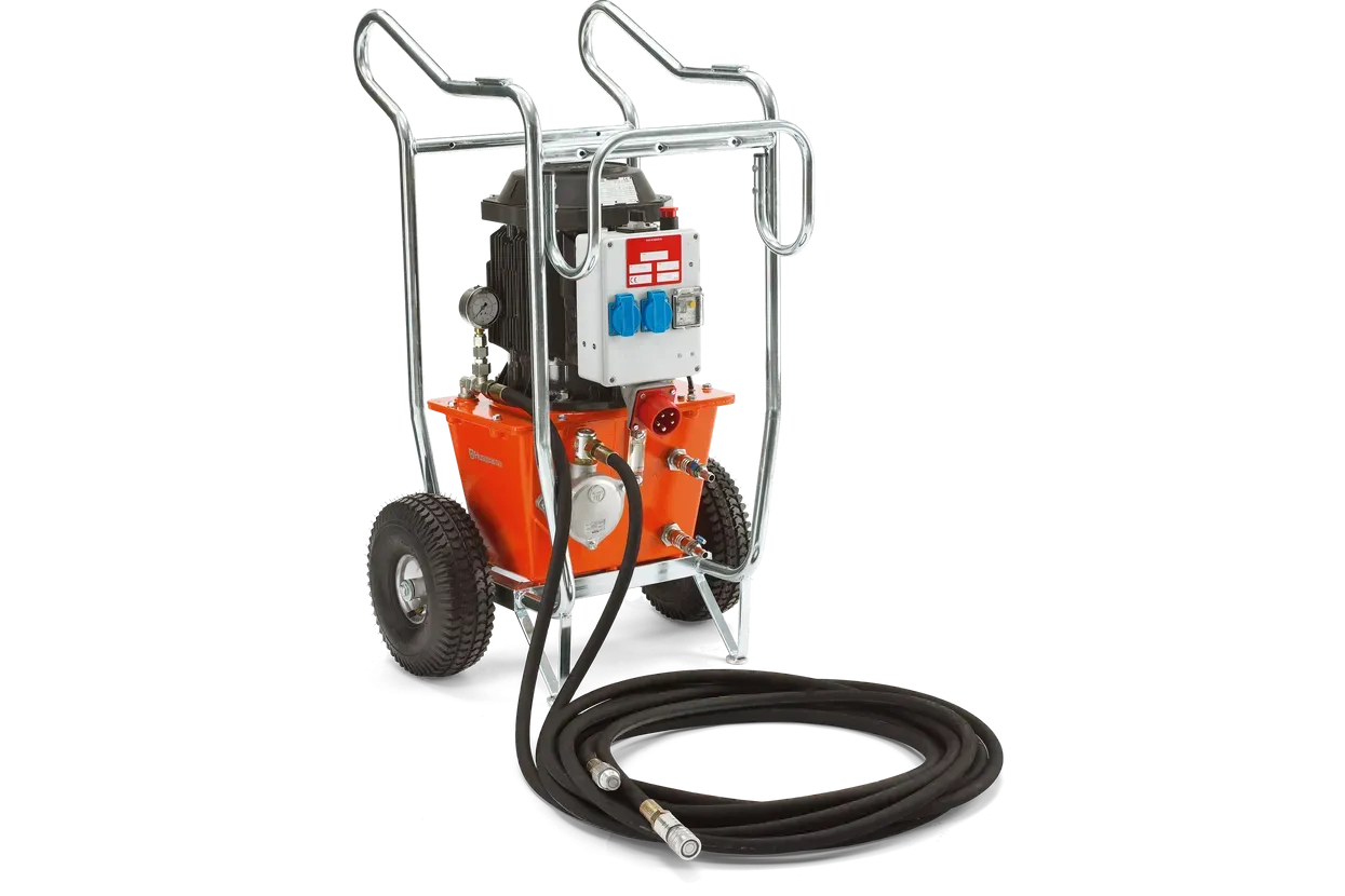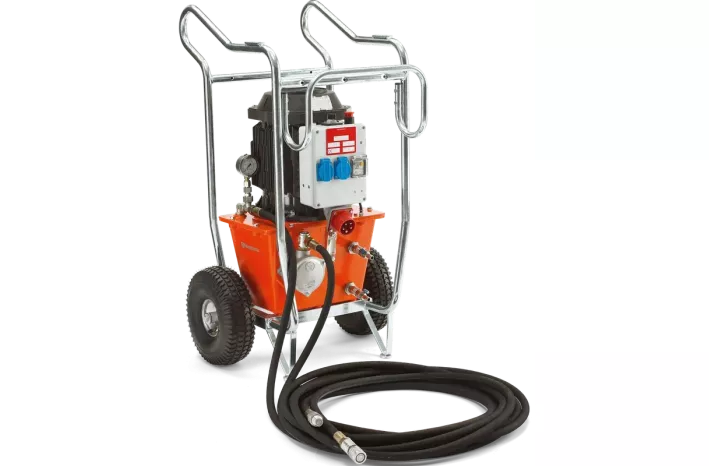 Husqvarna PP 325 E je robusna hidraulična jedinica snage 9.3 kW s ukupnom težinom od 95 kg. Dizajnirana za učinkovit rad i jednostavan prijevoz zahvaljujući čvrstom jednostrukom podvozju. Dolazi s vodenim hlađenjem za optimalnu radnu temperaturu te SoftStart™ tehnologijom koja omogućava neometano pokretanje čak i pri niskim temperaturama.