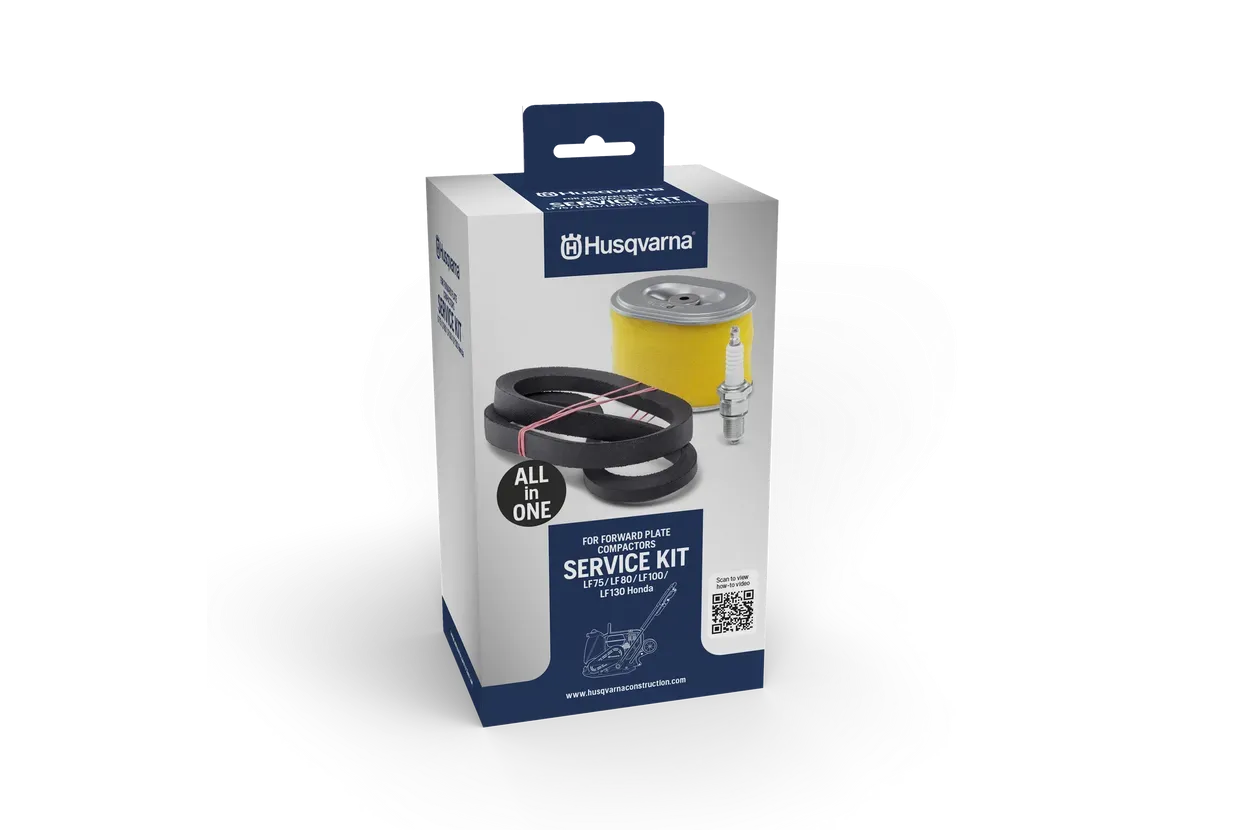 Husqvarna servisni komplet za vibracijske ploče LF 75/80/100/130 Honda - sveobuhvatan komplet originalnih dijelova za 12-mjesečno održavanje opreme za kompaktiranje. Uključuje sve potrebne komponente za redovite servisne intervale vibratornih ploča, reverzibilnih vibratornih ploča i vibracijskih nabijača, pakirane u praktičnu kutiju za jednostavno čuvanje i pristup.