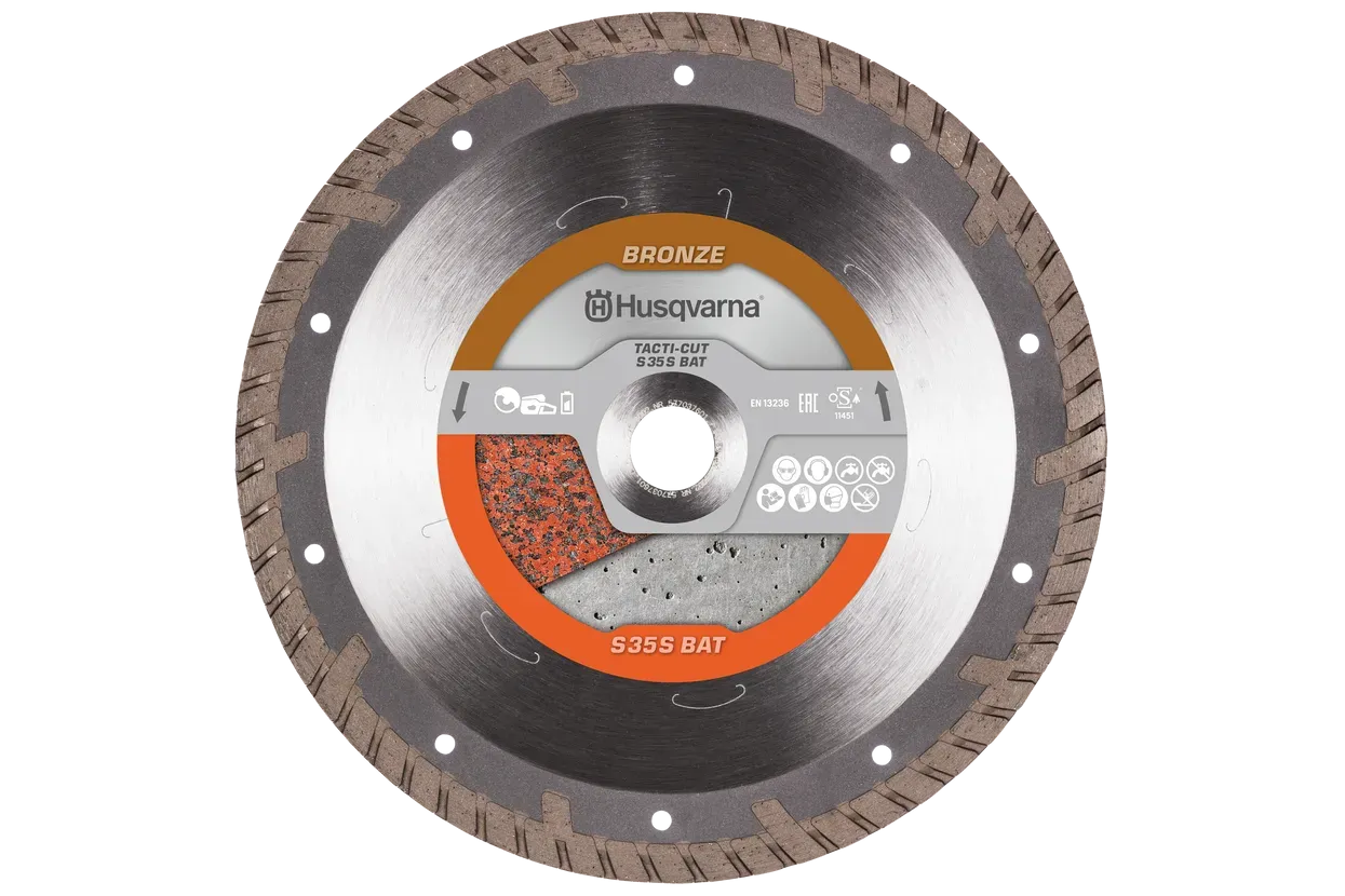 Husqvarna TACTI-CUT S35S BATTERY - revolucionarni akumulatorski rezač s promjerom ploče 230mm i snagom 0,5-2,7kW. Turbo konfiguracija oštrice omogućava precizno suho rezanje granita, betona i drugih građevinskih materijala bez CO₂ emisija. Kompaktan dizajn nagrađen Red Dot priznanjem.