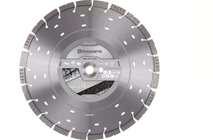 Husqvarna VARI-CUT™ S65 - revolucionarni dijamantni disk za građevinske materijale. Dostupan u promjerima 450mm i 500mm s otvorom 25,4mm. Inovativni dizajn segmenata omogućava do 15% brže rezanje i 20% duži vijek trajanja. Idealan za beton, ciglu, blokove i asfalt nad betonom. Kompatibilan sa strojevima snage 4-15,5kW. Pogoden za suho i mokro rezanje.
