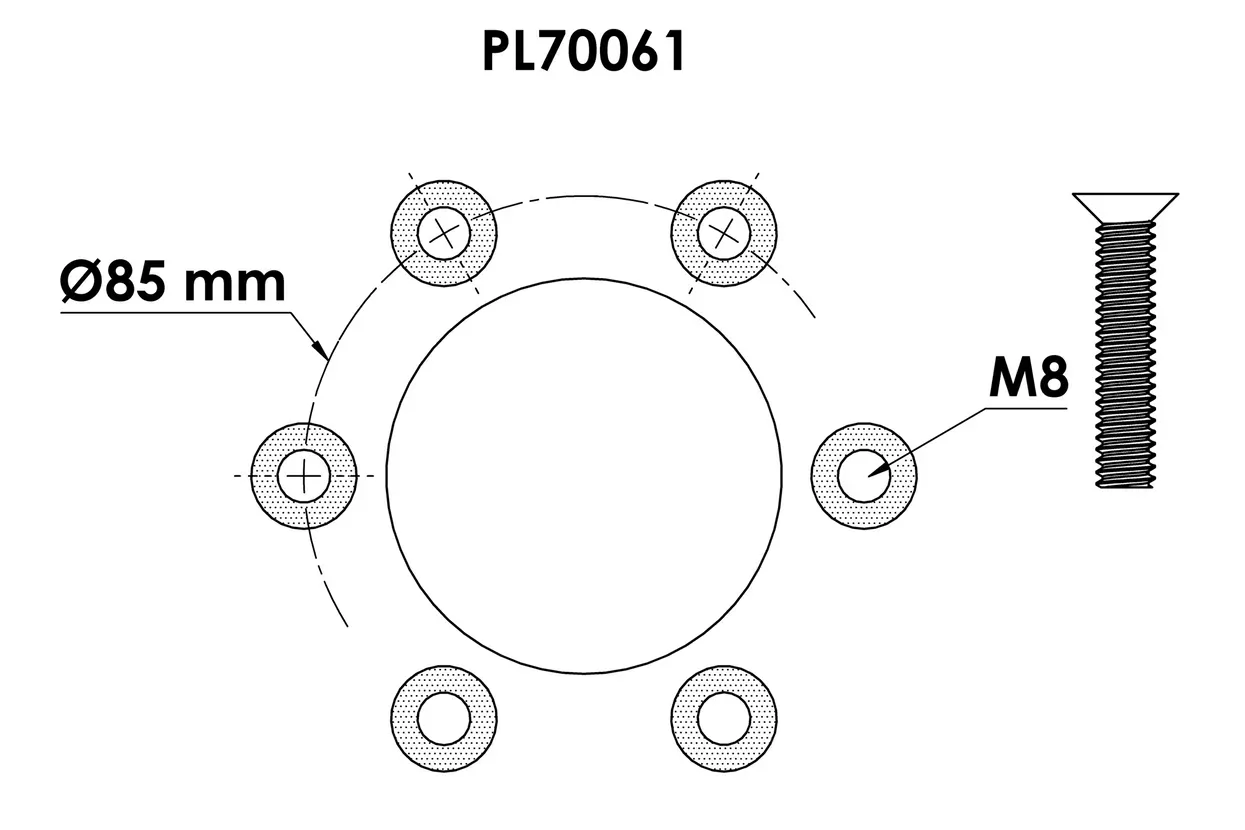 • Provrt ploče kod prirubnice: 60 mm, PL70061