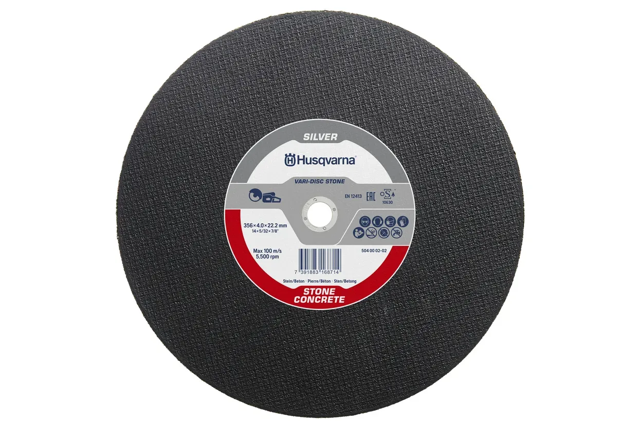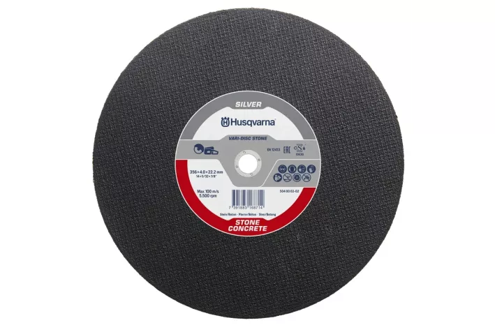 Husqvarna VARI-DISC™ STONE - profesionalni abrazivni disk za suho rezanje betona i kamena. Dostupan u različitim dimenzijama (300-400mm) s varijabilnim širinama segmenata. Kompatibilan s električnim rezačima snage 1,5-5,8 kW. Srebrna razina performansi osigurava pouzdanost i dugotrajnost za najzahtjevnije građevinske i kamenarske radove.