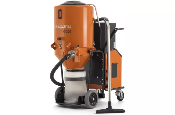 Husqvarna T 10000 industrijski usisavač razvijen za najzahtjevnije industrijske primjene. Opremljen s 3 HEPA H13 filtera koji uklanjaju 99,99% čestica prašine veličine 0,3 mikrona. Snažni motor od 11 kW osigurava maksimalni tlak od 30 kPa i protok zraka od 900 m³/h. Kompatibilan s modelima PG 830 RC, PG 830, PG 690 RC, PG 690 i PG 540. Idealan za dugotrajnu upotrebu u zahtjevnim industrijskim okruženjima.