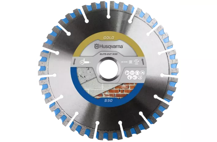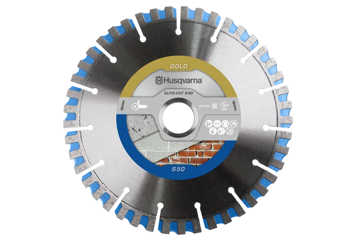 ELITE CUT S50 rezna ploča za kutne brusilice namijenjena je za suho rezanje betona. Dostupna u promjerima od 115 do 230 mm, s različitim visinama segmenta (12 ili 15 mm) i širinama segmenta (2,4 ili 2,6 mm). Ova dijamantna ploča odlikuje se brzim i učinkovitim rezanjem univerzalnih građevinskih materijala uz odličan omjer cijene i performansi. Dizajnirana za dugotrajnost i jednostavan početak rezanja.