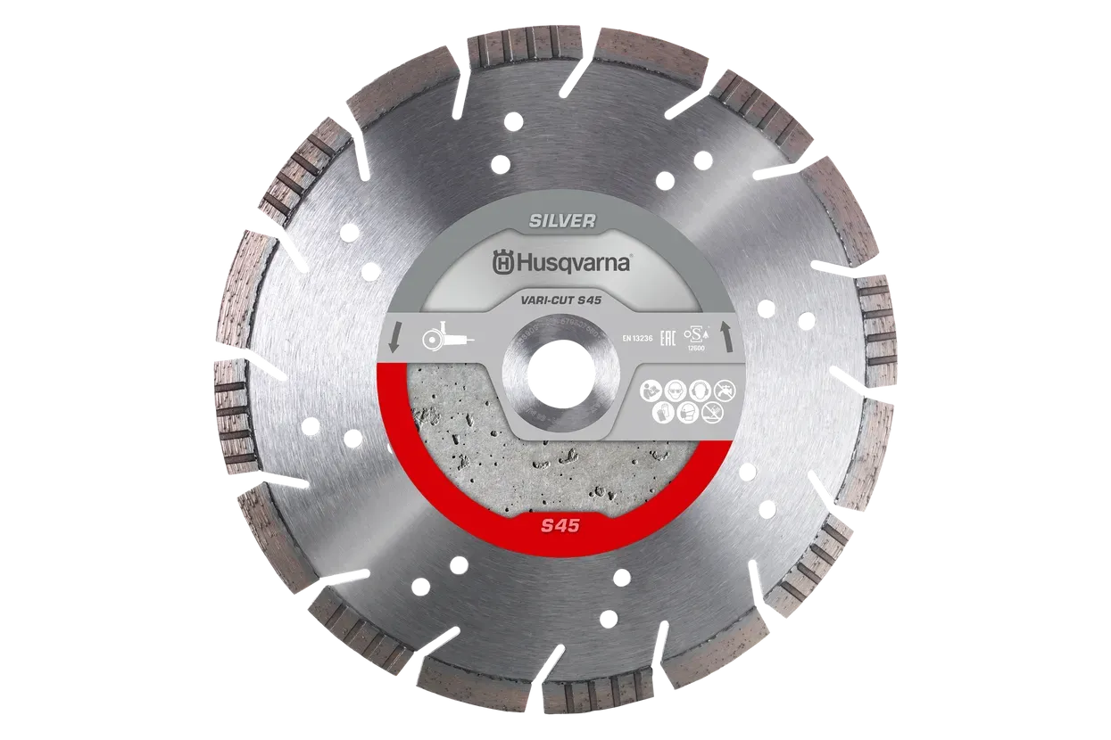 Rezna ploča VARI CUT S45 za kutne brusilice promjera 230 mm s provrtom od 22,23 mm dizajnirana je za suho rezanje betona. Nudi odličan omjer cijene i učinkovitosti uz visoke segmente od 10 mm, širine 2,5 mm. Izrađena prema EN13236 standardima, osigurava sigurno i pouzdano korištenje na raznim građevinskim materijalima.