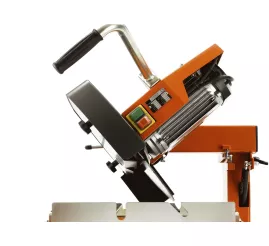 TS 350 E odlikuje se ergonomskim dizajnom koji olakšava svakodnevnu upotrebu. Zahvaljujući sklopivim nogicama i stražnjim kotačima, transport i skladištenje postaju jednostavni. Čvrst okvir štiti vodilice od vanjskih utjecaja, osiguravajući dugotrajnost i preciznost.