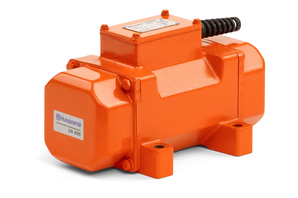 Husqvarna ER 405 dolazi s izlaznom snagom od 0,6 kW i impresivnom centrifugalnom silom od 6000 N. Vibratorski uređaj teži 20 kg, što ga čini dovoljno robusnim za zahtjevne poslove, a opet upravljivim za svakodnevnu upotrebu. Dizajniran je za rad na naponu od 230/400 V i standardnoj frekvenciji od 50 Hz.