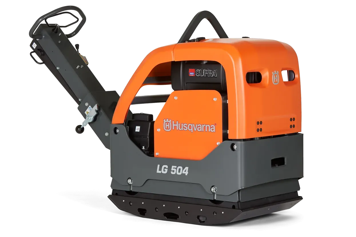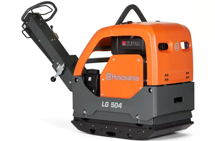 Husqvarna LG 504 vibro ploča dolazi u varijantama različitih širina ploče (550mm, 700mm i 850mm) s Hatz dizelskim motorom od 9,2 kW. Uređaj pruža centrifugalnu silu od 65 kN pri frekvenciji od 69 Hz, što ga čini idealnim za zbijanje tla. Opremljen je indikatorom zbijanja koji signalizira optimalnu kompresiju, te ručkom za smanjenje vibracija koja omogućuje duži rad. Emisija vibracija iznosi samo 2,5 m/s².