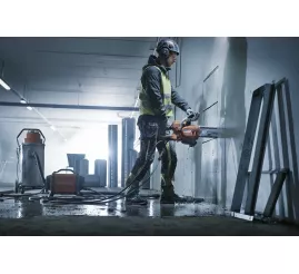 Uravnoteženo kućište s optimalno postavljenim ručkama smanjuje opterećenje tijela. Niska razina vibracija (2,7 m/s² prednja i 2,1 m/s² stražnja ručka) omogućuje dulju upotrebu bez umora. Osim toga, rezač bez emisija CO₂ tijekom uporabe omogućuje siguran rad u zatvorenim prostorima ili urbanim područjima, gdje emisije i razine buke mogu biti regulirane.